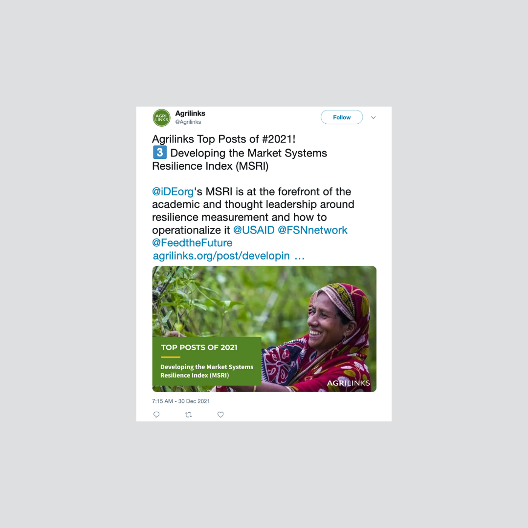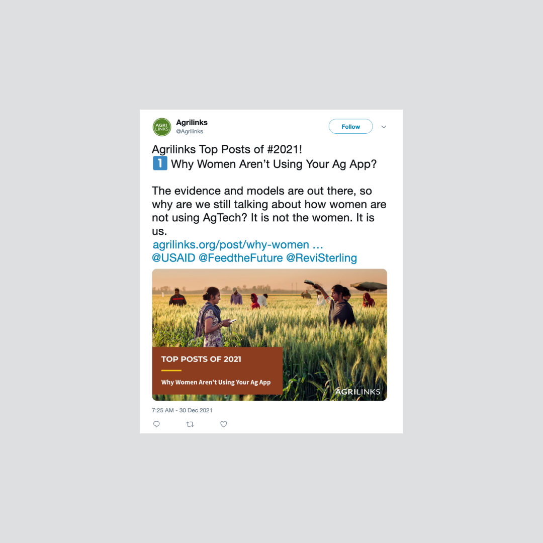 I supported the USAID Agrilinks initiative through social media copywriting and content development, helping to establish a clear and consistent brand voice across platforms.